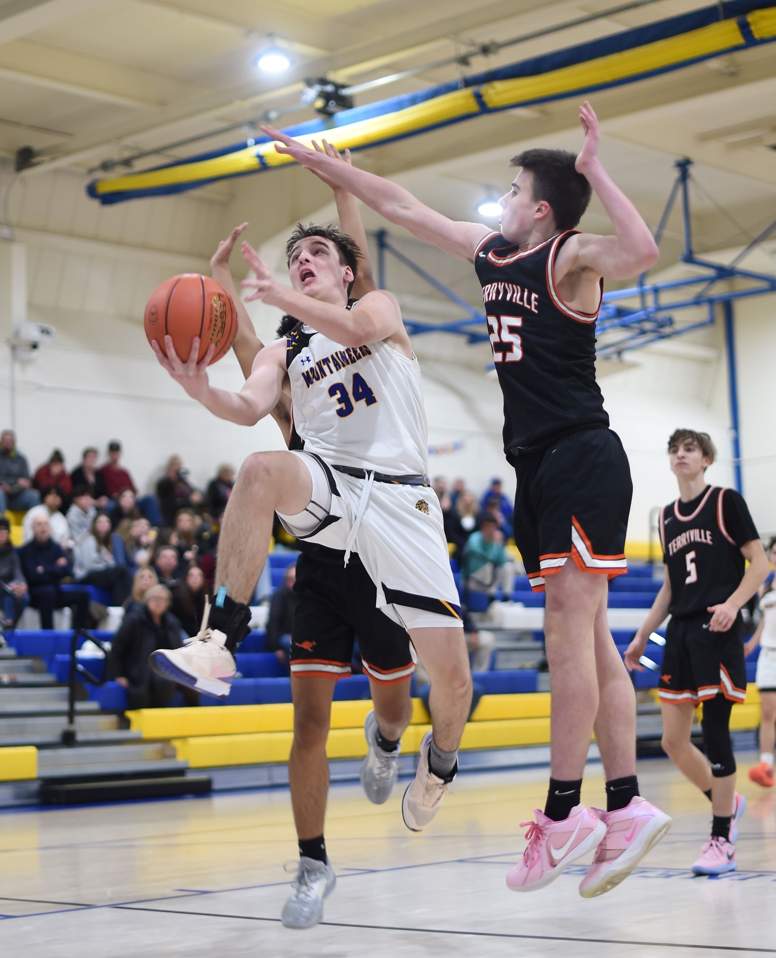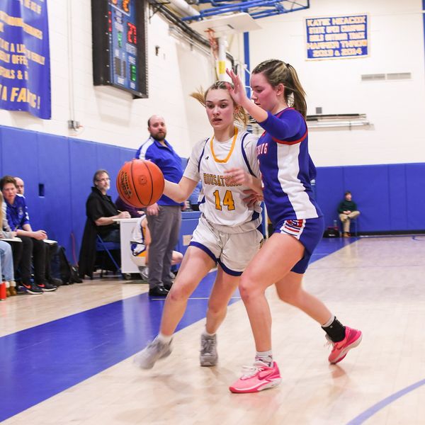 The girls varsity basketball team carried the team’s success into the postseason with an upset victory over Nonnewaug High School in the quarterfinal round of the Berkshire League Tournament. HVRHS’s Kylie Leonard locked down Nonnewaug’s star Ireland Starziski from start to finish to help secure the win.