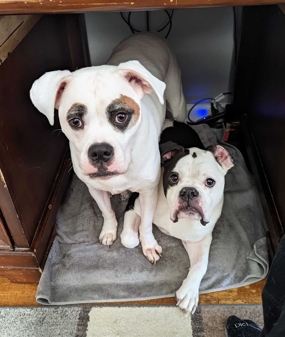 Take the case of the Battle for the Bed Beneath the Desk. A work-from-home job means considerable desk time. If the dogs join forces, they can both achieve foot contact atop the coveted memory foam bed stationed underneath. But that’s a big “if.”