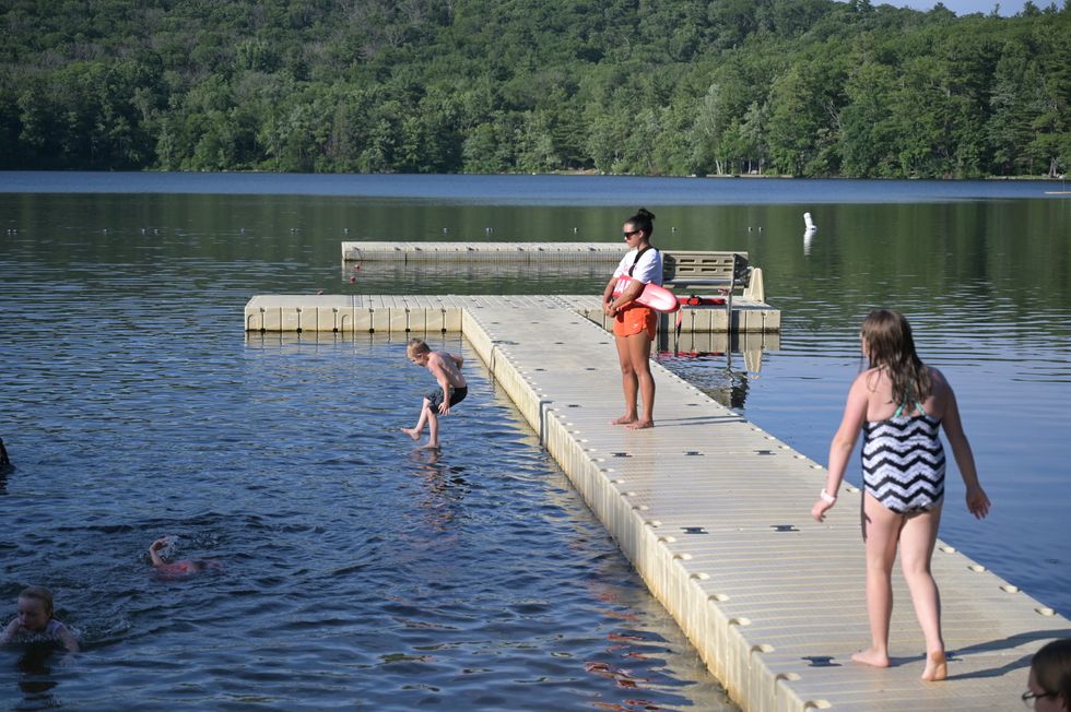 After grubbing up, many guests (mostly children) darted into the water. Older kids raced at the end of the dock while the younger ones played near the shore and in the wet sand. Town lifeguards kept a keen eye on swimmers in the lake.