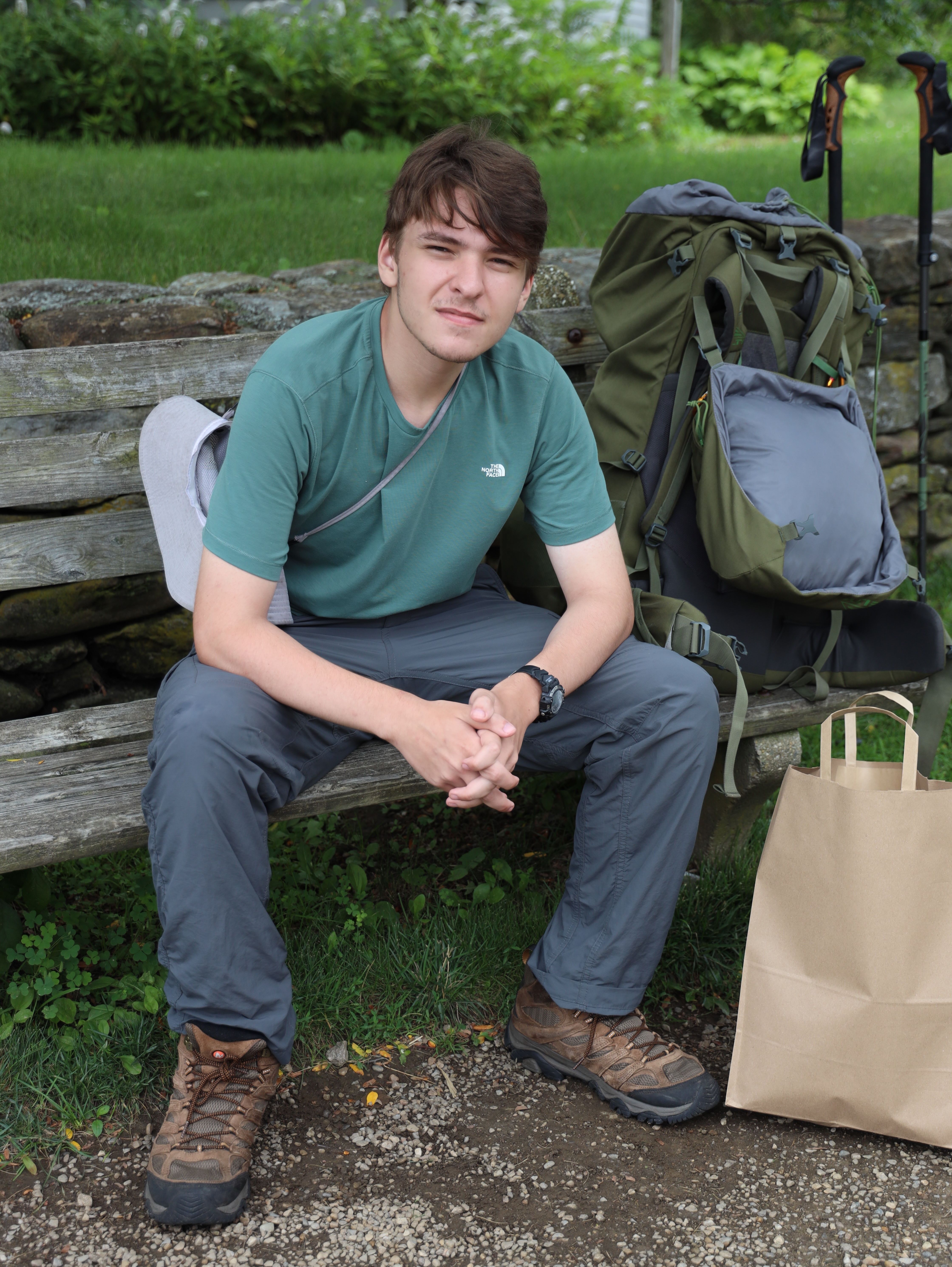 At the benches outside of LaBonne’s Market in Salisbury was Joseph “Tags” Guigliano refueling with a sandwich and pasta salad. Tags, who got his trail name simply by tagging along with another group of hikers, is from New Jersey and started southbound from Bear Mountain State Park in New York a few weeks ago. “I went in there and I restocked on a bunch of stuff. I bought like 10 packs of ramen. Calorie dense things that can be cooked in about one to two minutes is very important,” he shared.