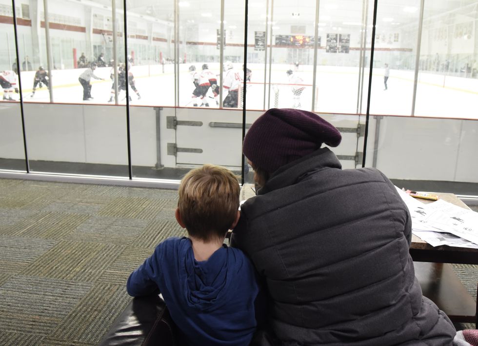 The hockey community gathered happily in the Stockdale Arena warming room for socializing and game watching. Hot chocolate, cookies and kids’ games kept everyone warm and comfortable — and happily meeting new friends.