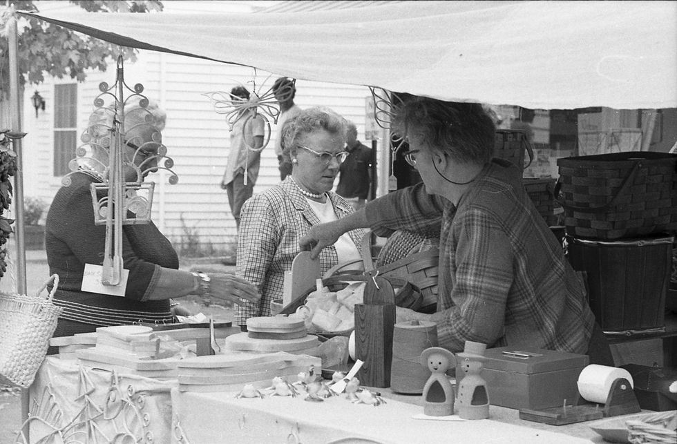 A sort of added bonus is the fun look at Northwest Corner fashion trends. This is New England, so of course most of the outfits range wildly in color from khaki to navy with some occasional bits of black. Sturdy crewneck sweaters are popular. The ladies usually have had their hair permed and coiffed, the gentlemen are usually in suits or at least slacks and a collared shirt.