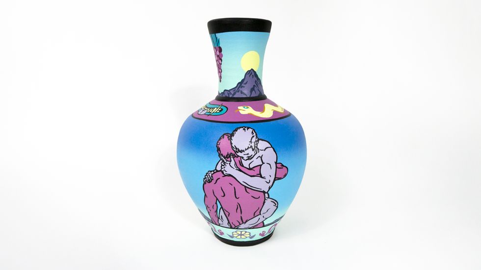 “My dad’s side is Greek and my mom’s side is Italian, and I grew up with my grandmother’s babysitting me, who were both history teachers,” Anagnostopoulos, a former artist-in-residence at The Wassaic Project, said over the phone. “Around both of their houses they had kitschy objects — Greek vases, or on the Italian side, a miniature souvenir of Michelangelo’s David. Kitsch became a symbol of adoration for me.”
