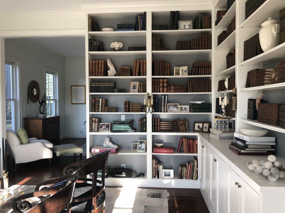 I decided my next focus would be my books. Though I gave away dozens of boxes of books when I moved, I still have plenty, and my swaybacked and crooked Ikea Billy shelves, which I’ve moved from home to home for over 20 years, just won’t cut it anymore. So I hired a local handyman to build a wall of bookshelves.