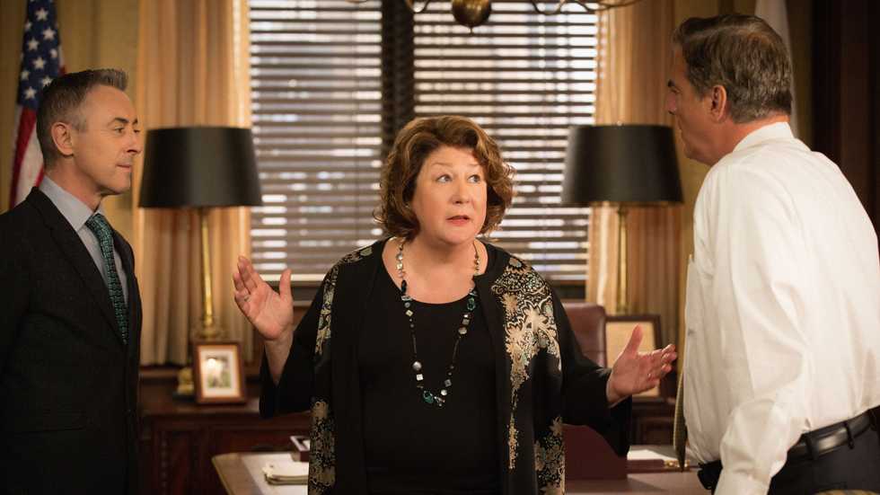 Margo Martindale, who appeared in “The Good Wife” with, at left, Alan Cumming and Chris Noth, will be the featured speaker in a Kent Memorial Library talk on Wednesday, July 15. Photo courtesy CBS