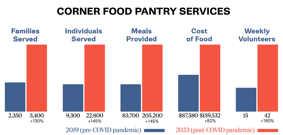 The number of families served more than doubled in that time period, from 2,350 in 2019 to 5,400 in 2023.