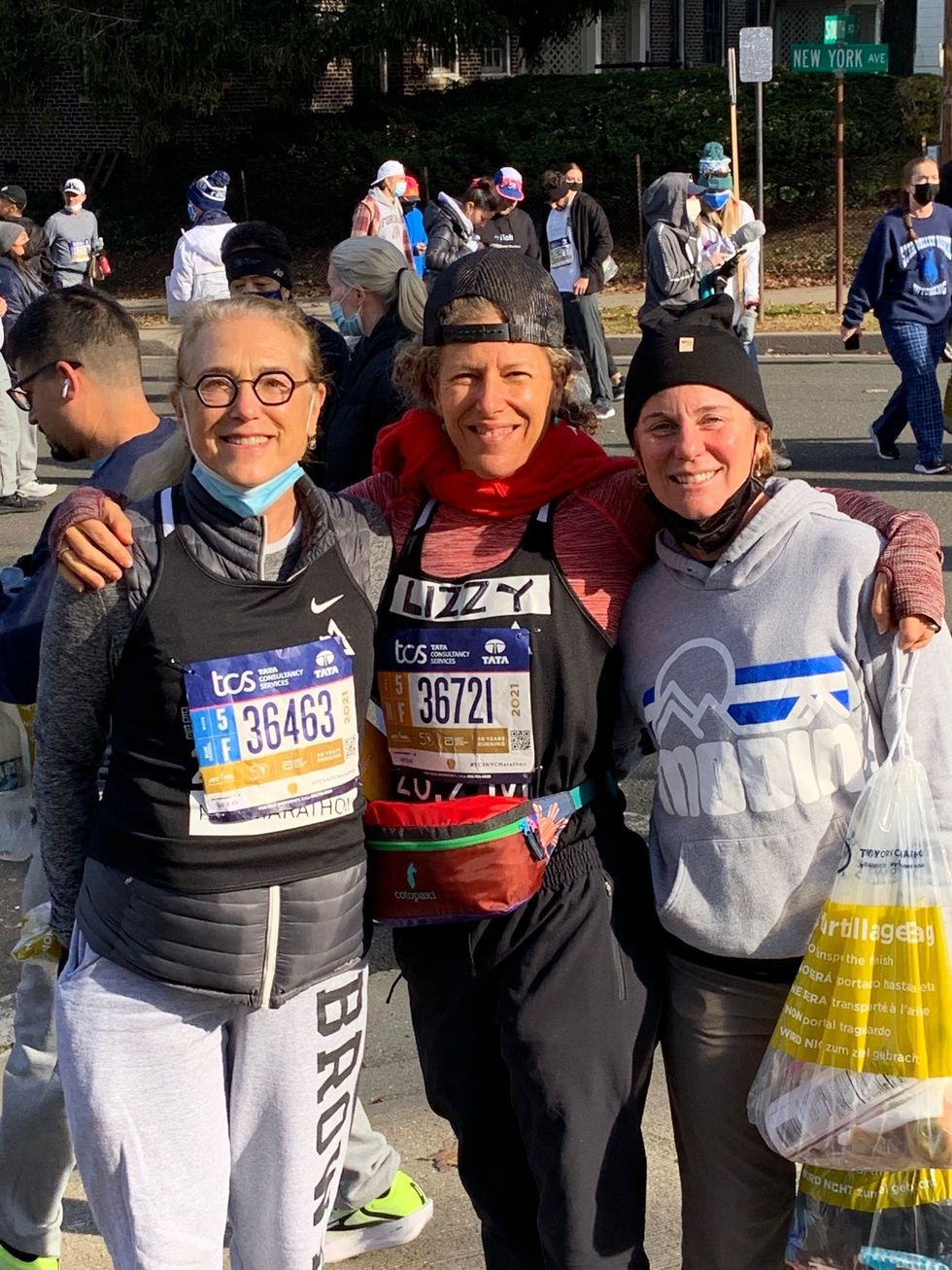 A few scant weeks before it began, Elizabeth England was recruited to walk the New York City Marathon with friends Alice Gottesman, at left in photo, and Marti Meyerson, at right. Photo courtesy Elizabeth England