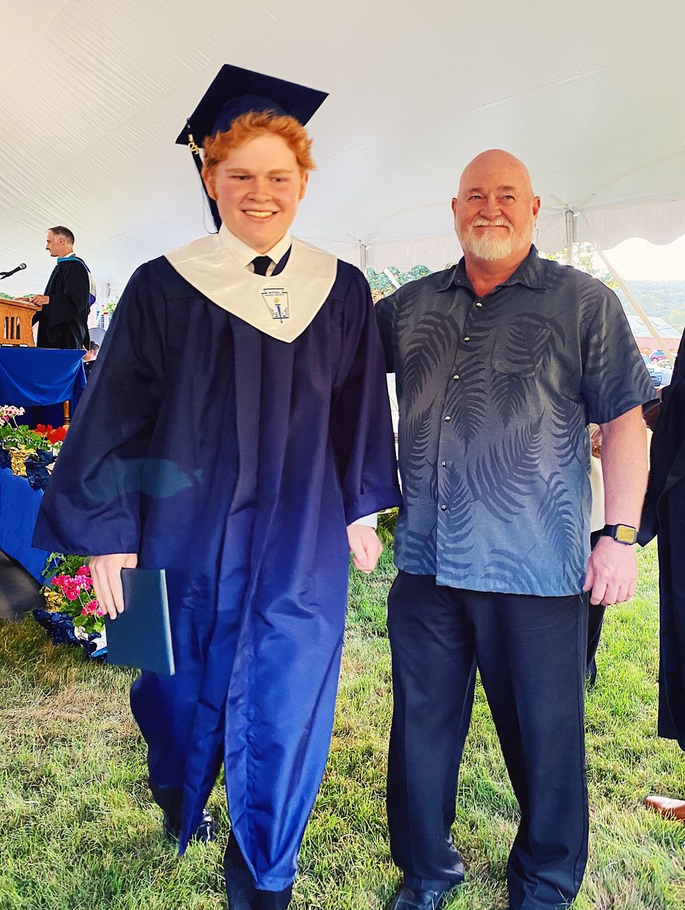 Senior Jacob Ellington of Sharon accepted his diploma from his father (and Housatonic Valley Regional High School Network Administrator) Mike Ellington. Photo by Alexander Wilburn