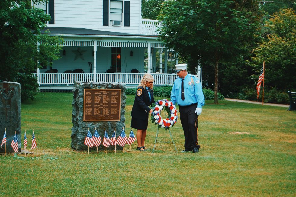 Chris Ohmen (left) held the flag while Chris Williams welcomed Salisbury residents to a Veterans Day ceremony at Town Hall Tuesday, Nov. 11.
