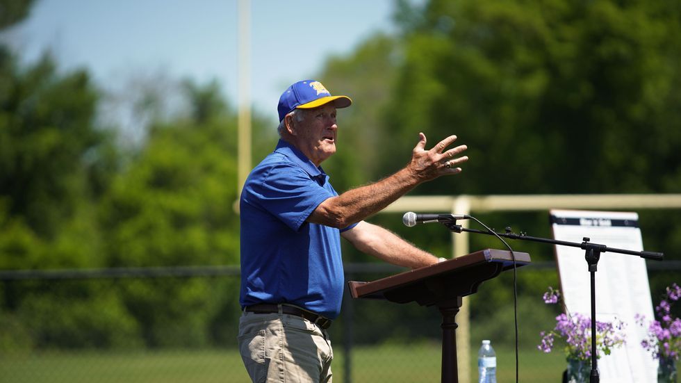 Richard Gustafson (HVRHS Class of 1959) opened the ceremonies by noting the alumni group had raised a hefty $152,860 for the refurbishing of the baseball field (which is named for Kirby).
