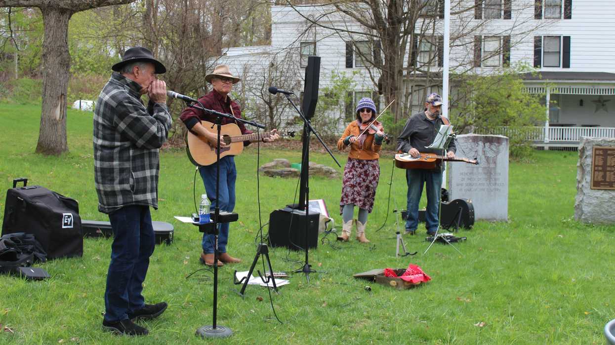 Back on the Green, local band Northwest Passage began playing around 11 a.m., as visitors, many of whom had filled up on pancakes and waffles with real maple syrup at the Falls Village Cafe, lingered in the cool air.