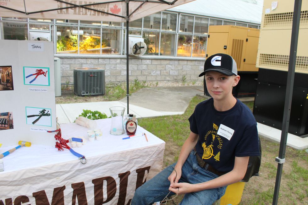 Travis Barber, a 9th grader from Cornwall, was stationed somewhat out of the main drag of activity. That’s because there were some trees nearby, and his topic was how to prune trees.