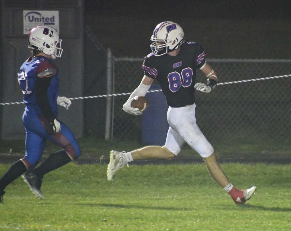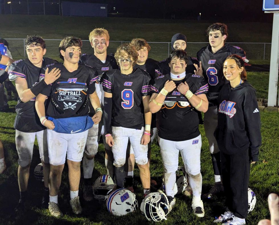 The game concluded in some confusion. A late run by Linnen ended when he was tackled near the end zone. The ball was spotted at the one-yard line and GNH took a knee to end the fourth quarter with the scoreboard reading 28-0. After the game, Linnen’s run was reassessed as a touchdown, and the final score was adjusted to 34-0.