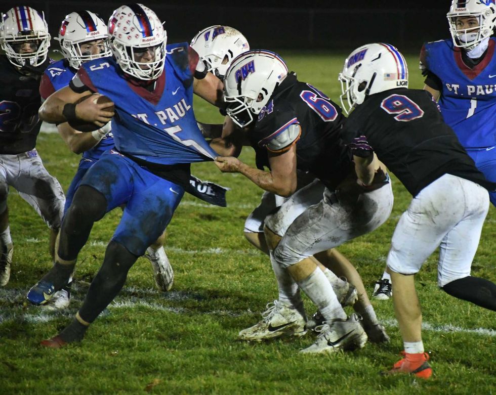 Wes Allyn breaks away from the St. Paul defense for a reception touchdown Wednesday, Nov. 26.