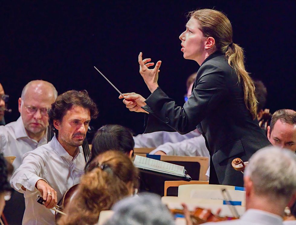 Velinzon and the strings were superb — a powerfully played Brahms. Handler made her mark. She bowed modestly, placing hand to heart, and pointed to credit various sections and individuals. She strode off stage with pace and quickly returned for Schumann’s “Symphony No. 4.”