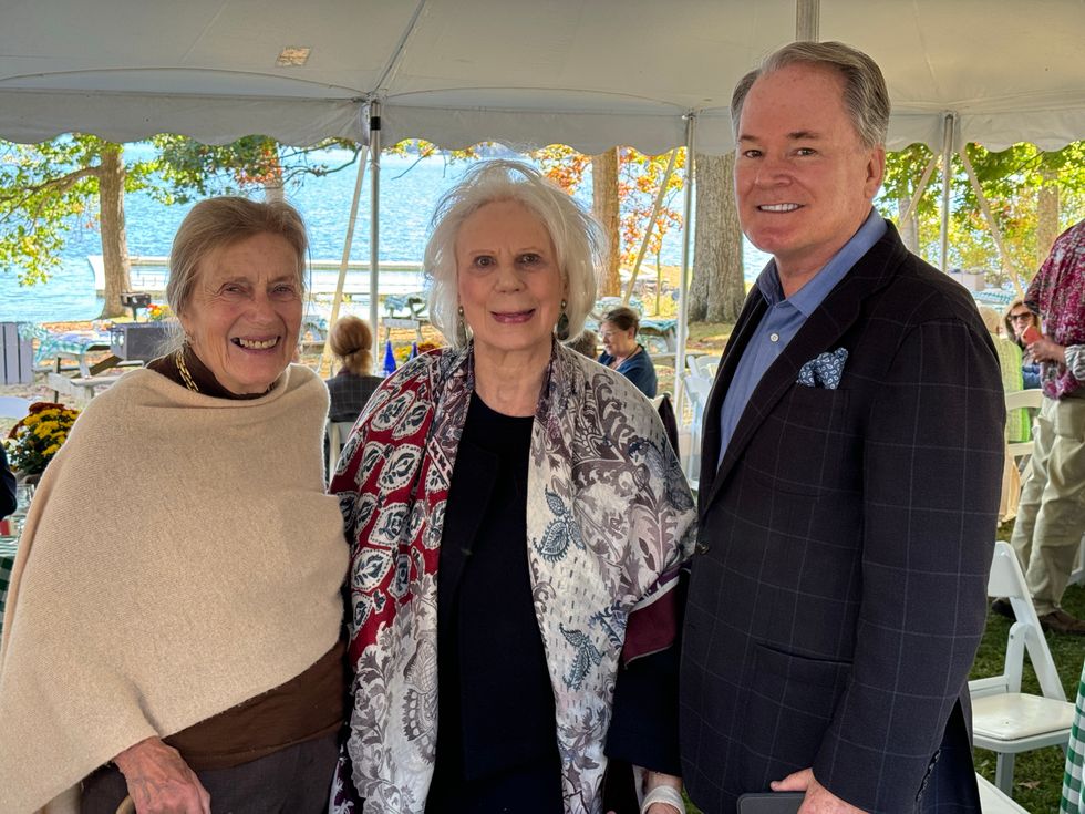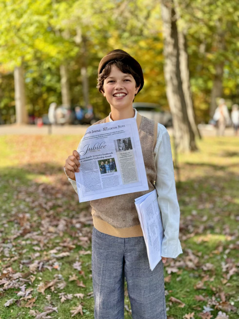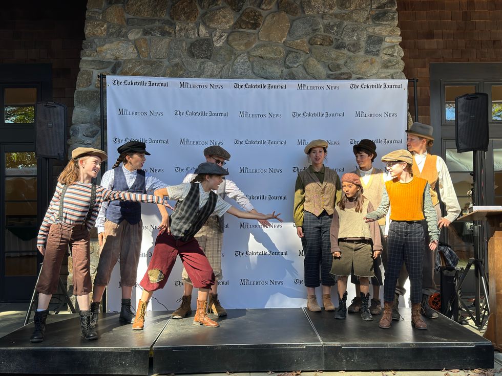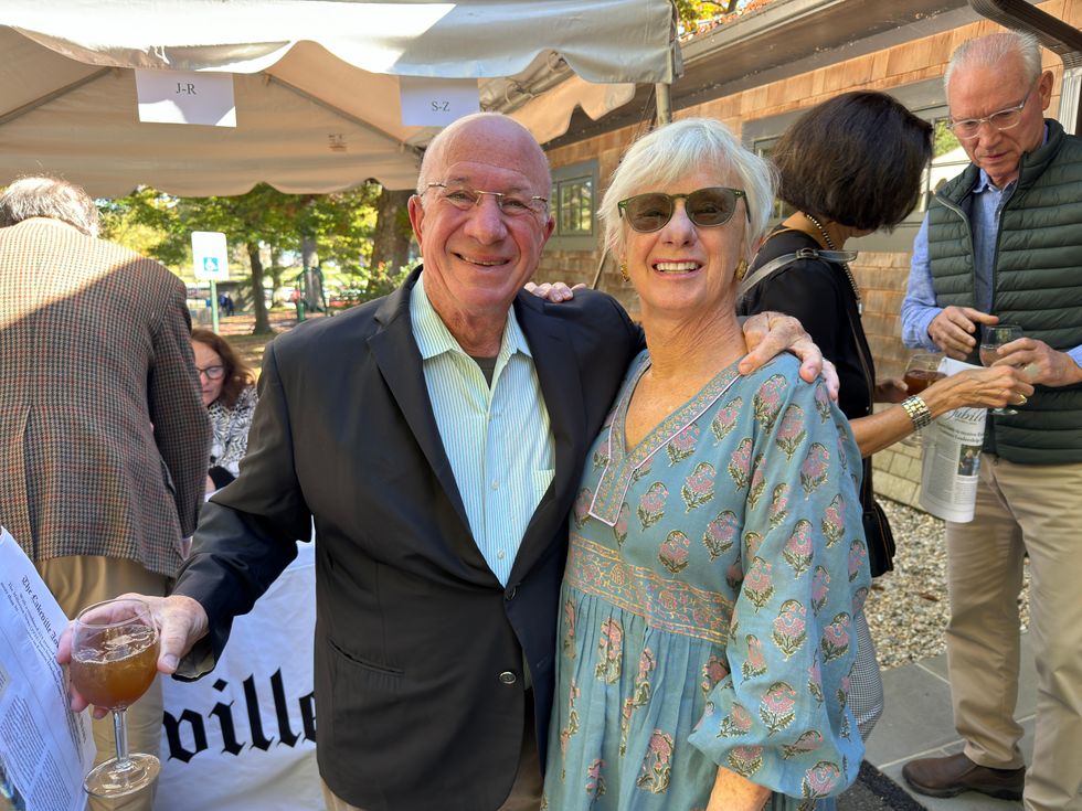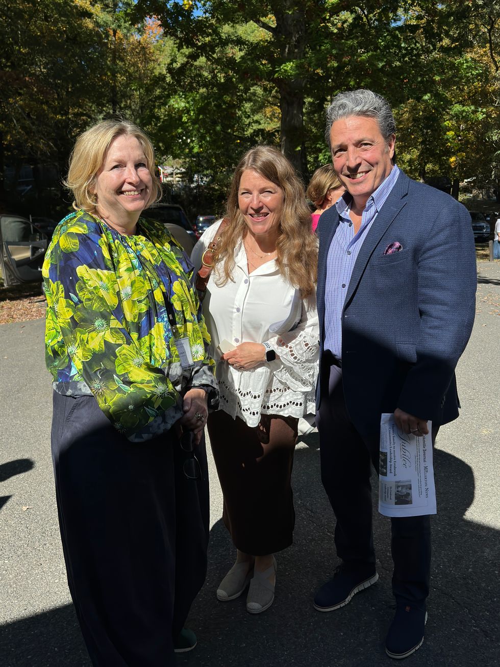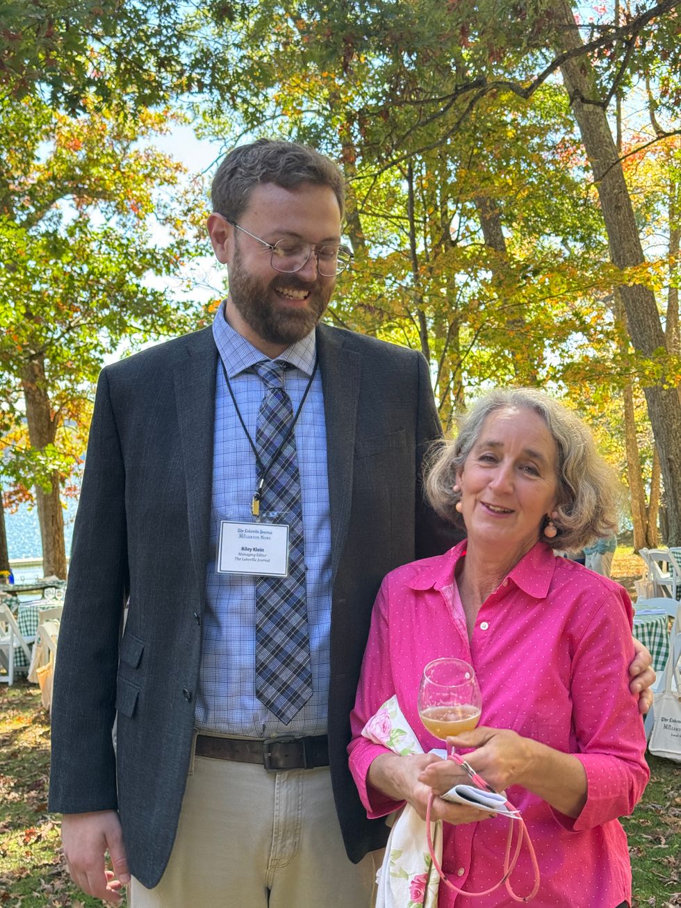 Brian Ross, board member of The Lakeville Journal and The Millerton News presents Elyse Harney and the Harney family with the inaugural Estabrook Community Leadership Award Oct. 6.