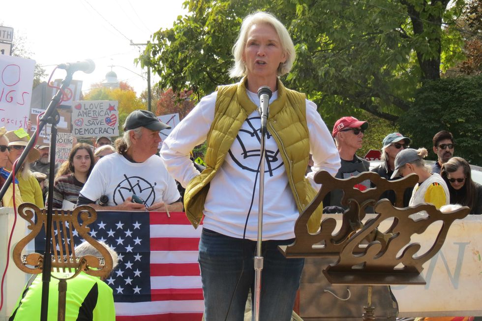 State Rep. Maria Horn (D-64) said the importance of showing up for rallies such as this one cannot be underestimated. She lamented what is happening, saying what disturbs her most as a former federal prosecutor is the behavior of masked ICE members.