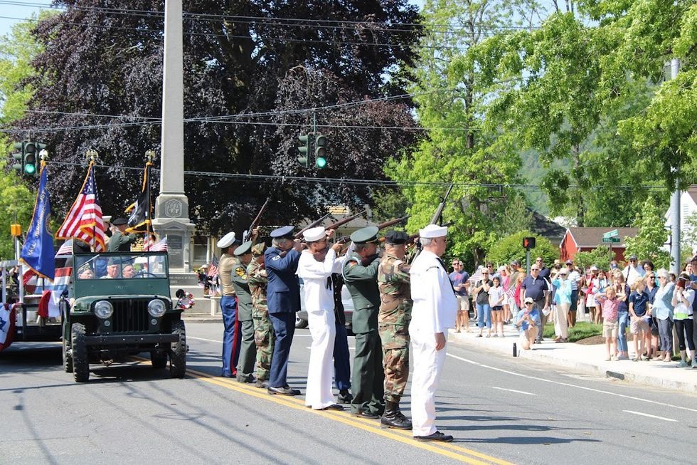 One of many rifle salutes during the Memorial Day Parade in Kent. Photo by Ollie Gratzinger