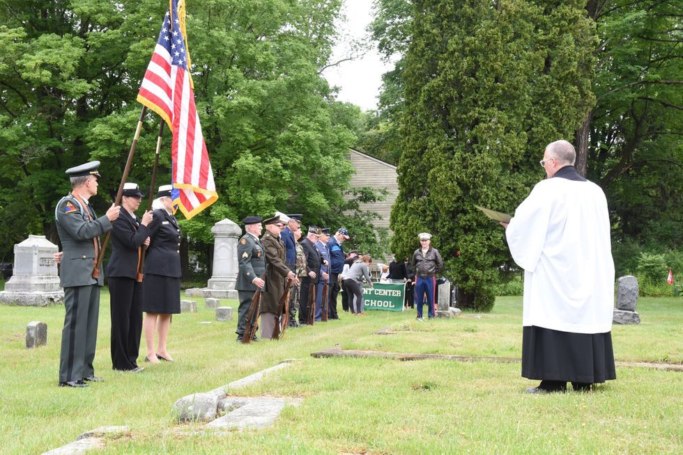 Under cloudy but dry conditions, the parade proceeded from Kent Center School through the town center, with stops at St. Andrew’s Cemetery (where the Rev. Douglas Worthington offered a memorial invocation) and the town’s war memorials.