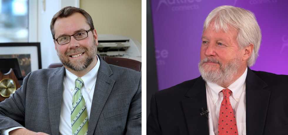 Left, David Gronbach, a former mayor of New Milford, is seeking election to the state Senate in the 30th District. Right, Incumbent Republican Craig Miner is running again for a state Senate seat representing the 30th District. File photos