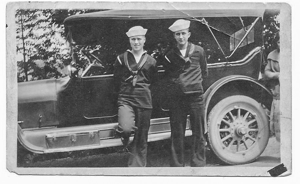 Millbrook’s Francis Dean and William Kain, before they left to serve in the Naval Coast Defense Duty, two of approximately 10 young men from the village in the Army or Navy. From The  Millbrook Roundtable July 17, 1917, thanks to Jack Dean, New York, N.Y., and the Millbrook Historical Society Archives. Photo courtesy Jack Dean