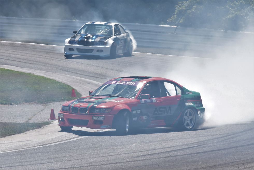 Cars drifting at Lime Rock on Saturday, Aug. 20, as part of a Gridlife event at the park. Photo by Lans Christensen