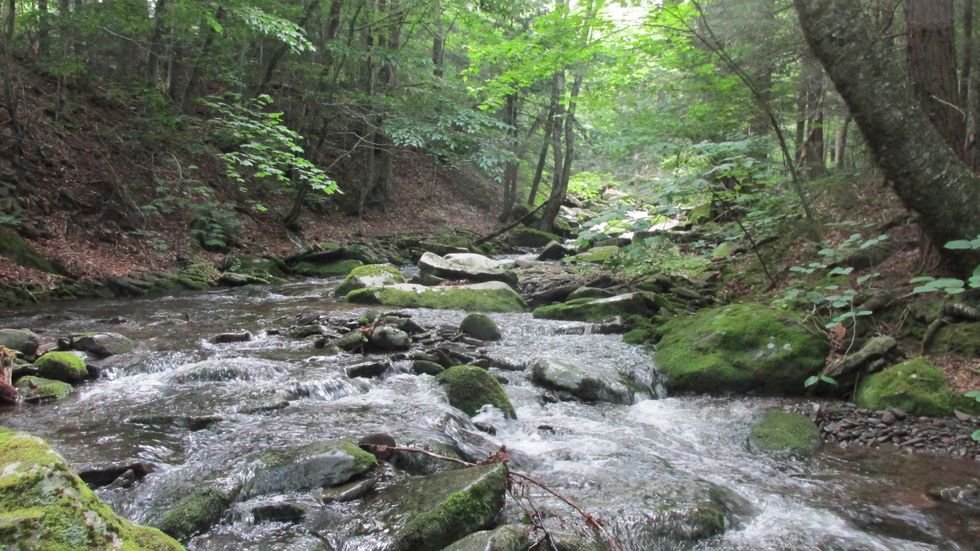 We proceeded upstream and tried a couple of spots with no result. Then Gary had to go do some stuff involving legal documents, so I traveled further into the interior to a trailhead parking lot, which is the headwaters of the Batavia Kill and has feisty little brook trout.