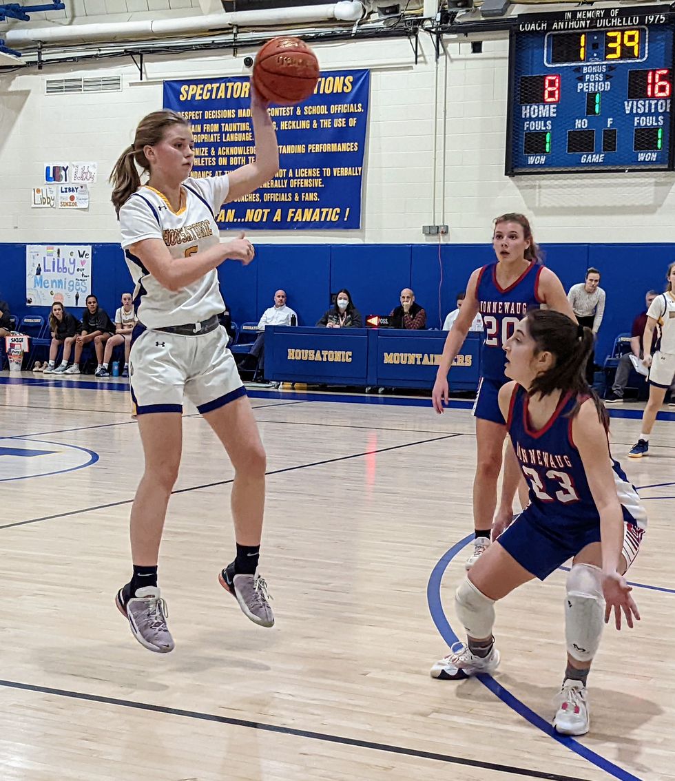 Mountaineer sophomore guard Tessa Dekker scored 17 points against Nonnewaug on Feb. 14. Nonnewaug won 67-32. Photo by Riley Klein