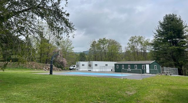 Tiffany Lemelin of Winsted is Little Guild kennel manager and gave a tour of the temporary facility in Foote Field on Furnace Brook Road in Cornwall Bridge, which opened two weeks ago and will serve as headquarters during construction. There are two large trailers, one housing cats, another their offices. They also purchased a large dog kennel. The dogs and cats currently sheltered at the Little Guild seem perfectly comfortable in their new digs. The staff said they have what they need to get through the next year. They were putting up a large tent to give shade to the dog run and situating a blue wading pool for the dogs to stay cool.