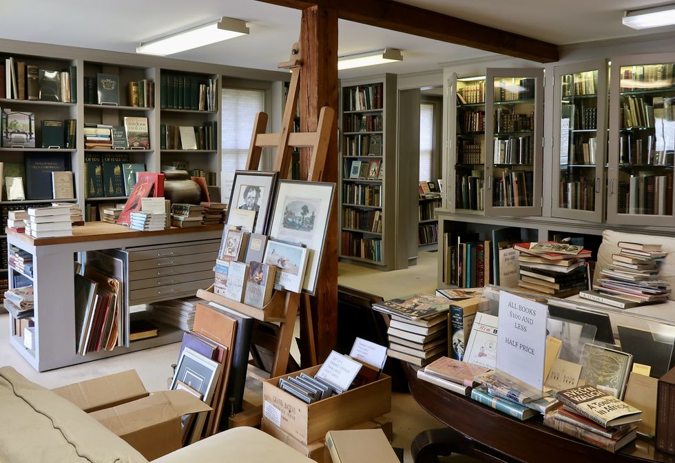The history of antiquarian booksellers in Salisbury, Connecticut, dates back to 1930. Dan Dwyer established Johnnycake Books – at 12 Academy Street – in March of 2000. The name has both literary and personal references: Growing up in New Bedford, Massachusetts, Dwyer spent countless rainy afternoons at the Whaling Museum atop Johnnycake Hill, which is also the setting for the opening chapter of Moby Dick. Dwyer’s collection of rare books reflects his own interests and those of his customers. On shelves, tables, couches, and easels, books are displayed like artwork.