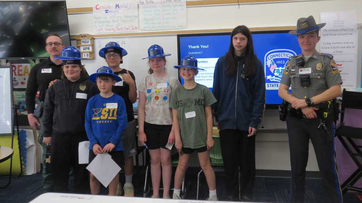 Students particularly enjoyed hearing about the K-9 unit, which is composed of German shepherds, Labrador retrievers, bloodhounds and comfort dogs. One youngster shared that he had a bloodhound. Wedge told them Connecticut had the first currency dog, which is used to sniff out large amounts of concealed money in the fight against money laundering, illegal gambling and smuggling.