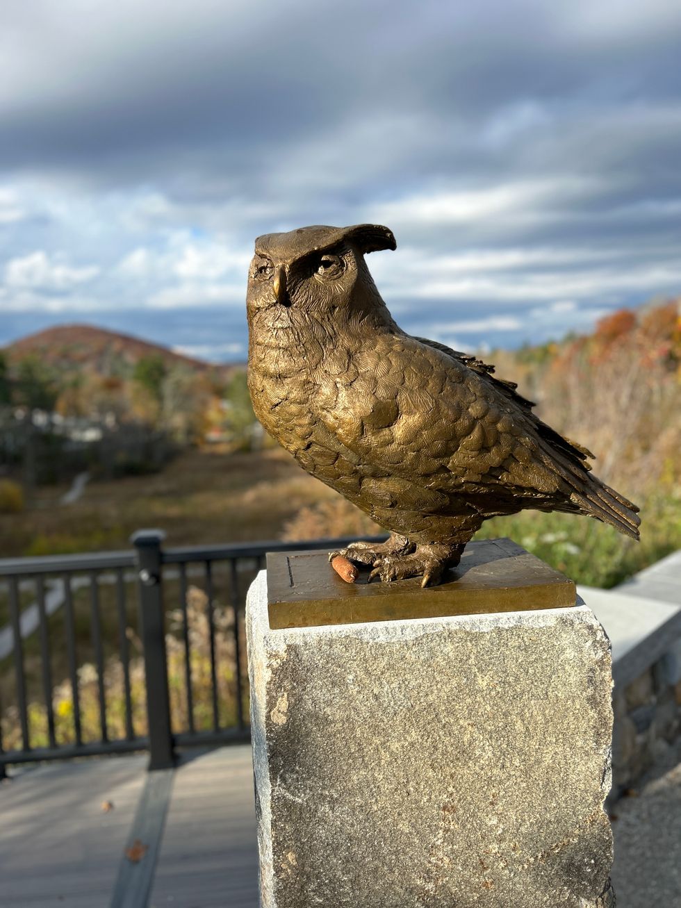Riedeman’s powerful bronze creation, the “Owl of Good Fortune” was installed on a granite plinth at the edge of the newly renovated Robertson Plaza in the center of town. The unveiling on Sept. 2 was a joyous community event with speeches, and music provided by Norfolk’s own Michael Cobb.