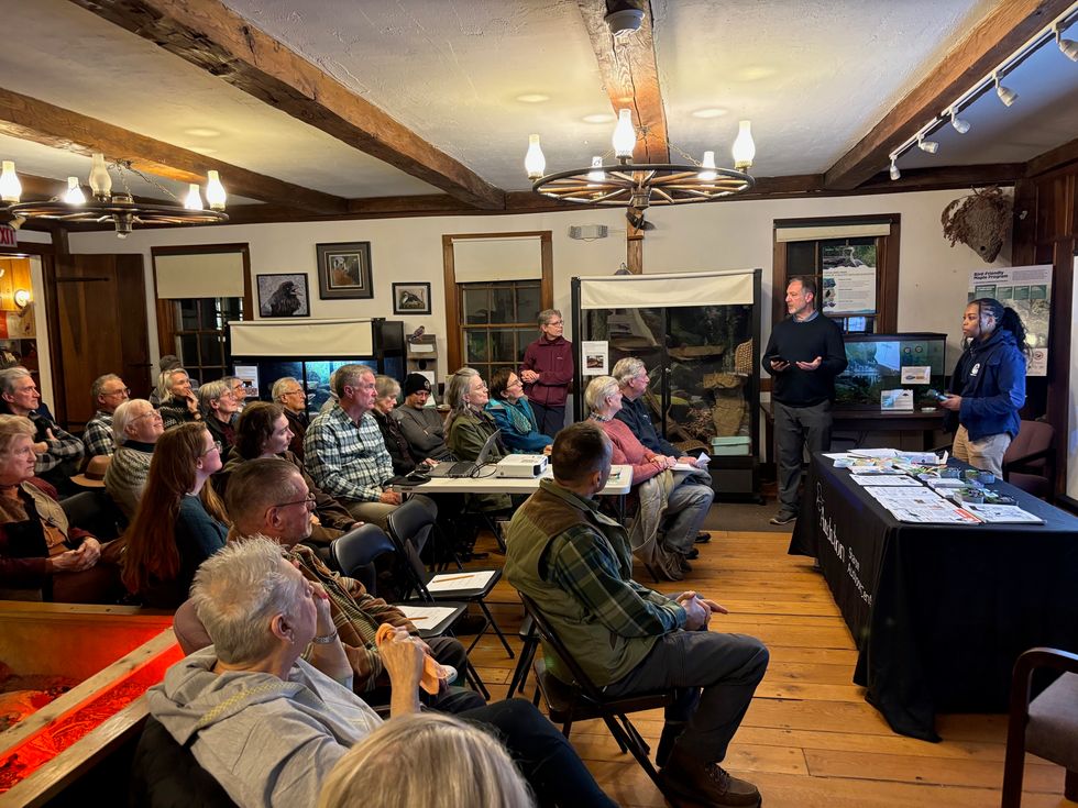 SHARON — About 40 people filled the Sharon Audubon Center on Wednesday, Dec. 3, to discuss black bears — and most attendees made clear that they welcome the animals’ presence. Even as they traded practical advice on how to keep bears out of garages, porches and trash cans, residents repeatedly emphasized that they want the bears to stay and that the real problem lies with people, not wildlife.