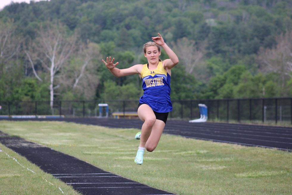 Mia Dodge jumped 4.47 meters in the long jump on her way to winning gold for HVRHS in the Berkshire League heptathlon last spring.