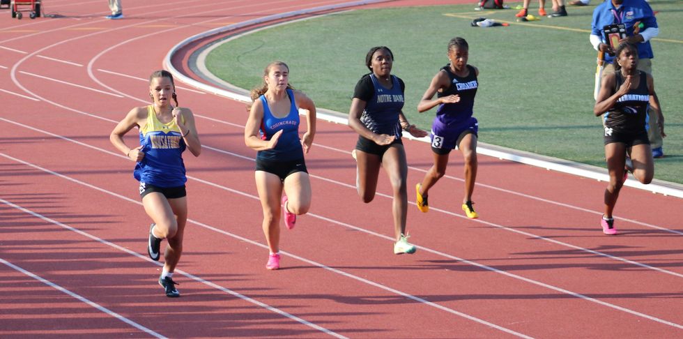 Freshman Ava Segalla won her preliminary 100-meter heat with a time of 13.01 seconds and qualified for the finals. She placed fifth in the 100-meter championship race at 13.05 seconds and also qualified for the state opens.