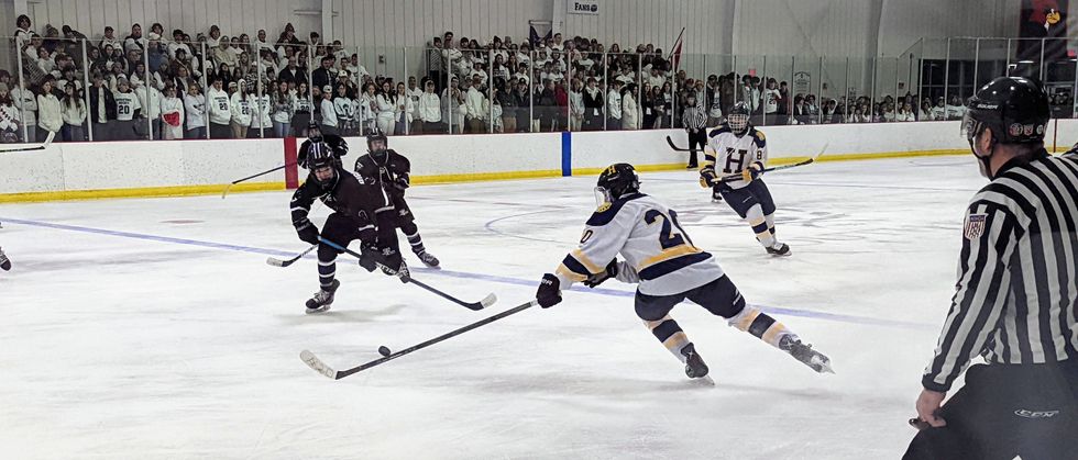Housatonic co-op hockey took a tragic blow late in the 2023 season when teammate Marcus Rogers and his grandfather died in a car accident traveling to practice. A somber tribute was held on the ice before the game following the accident.