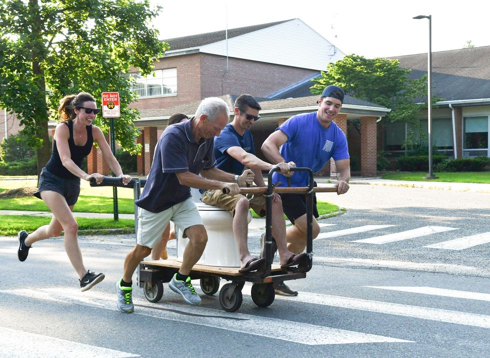 The Royal Flush, a returning victor of the Bed Race, won again with a team of Will Perotti, Samantha Perotti, Anthony DeMeo, and Joe and Becky Schaefer. The “Flush” was not flush with team members just before the start and recruited from the audience of onlookers.