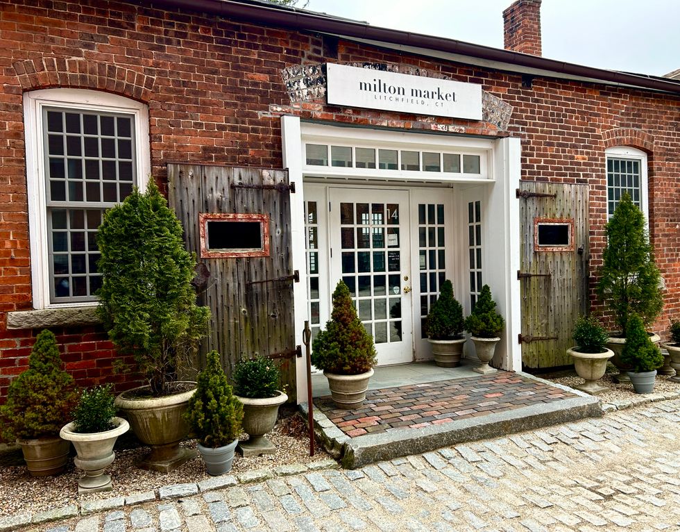 Milton Market is in a former 18th century blacksmith shop tucked into Cobble Court in Litchfield. Owner Martha Fish opened her “luxury general store,” in 2019. Her previous career in fashion included being an executive at Calvin Klein.