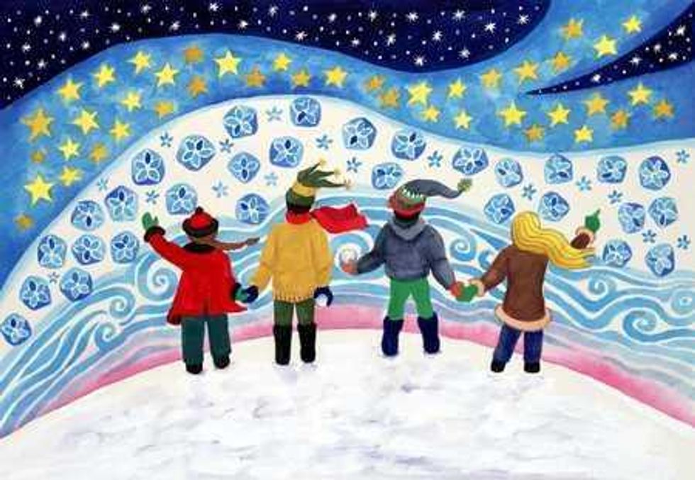 Her children loved winter, and that became a theme for her. “I felt the magic of winter as I saw it through my children’s eyes,” Atkinson remembered. She said one of her first paintings, “Winter Wonderland,” was quickly licensed by an English greeting card company “as soon as I placed it in Illustration Source,” the agency that represents her.