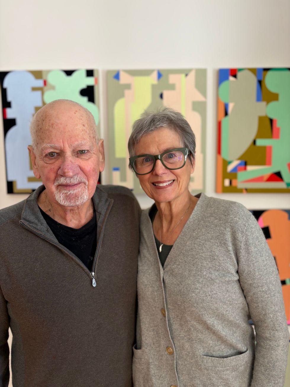 Artistically, they guard each other’s independence. “We have unspoken rules,” Plagens said. “You don’t comment on someone’s work while they’re in the middle of creating it.” Critique comes by invitation only. “He’s not mean, just direct,” said Fendrich. Over time, their aesthetics have subtly converged. “My work has gotten cleaner from looking at his,” she said. “He’s gotten more colorful because of me.”