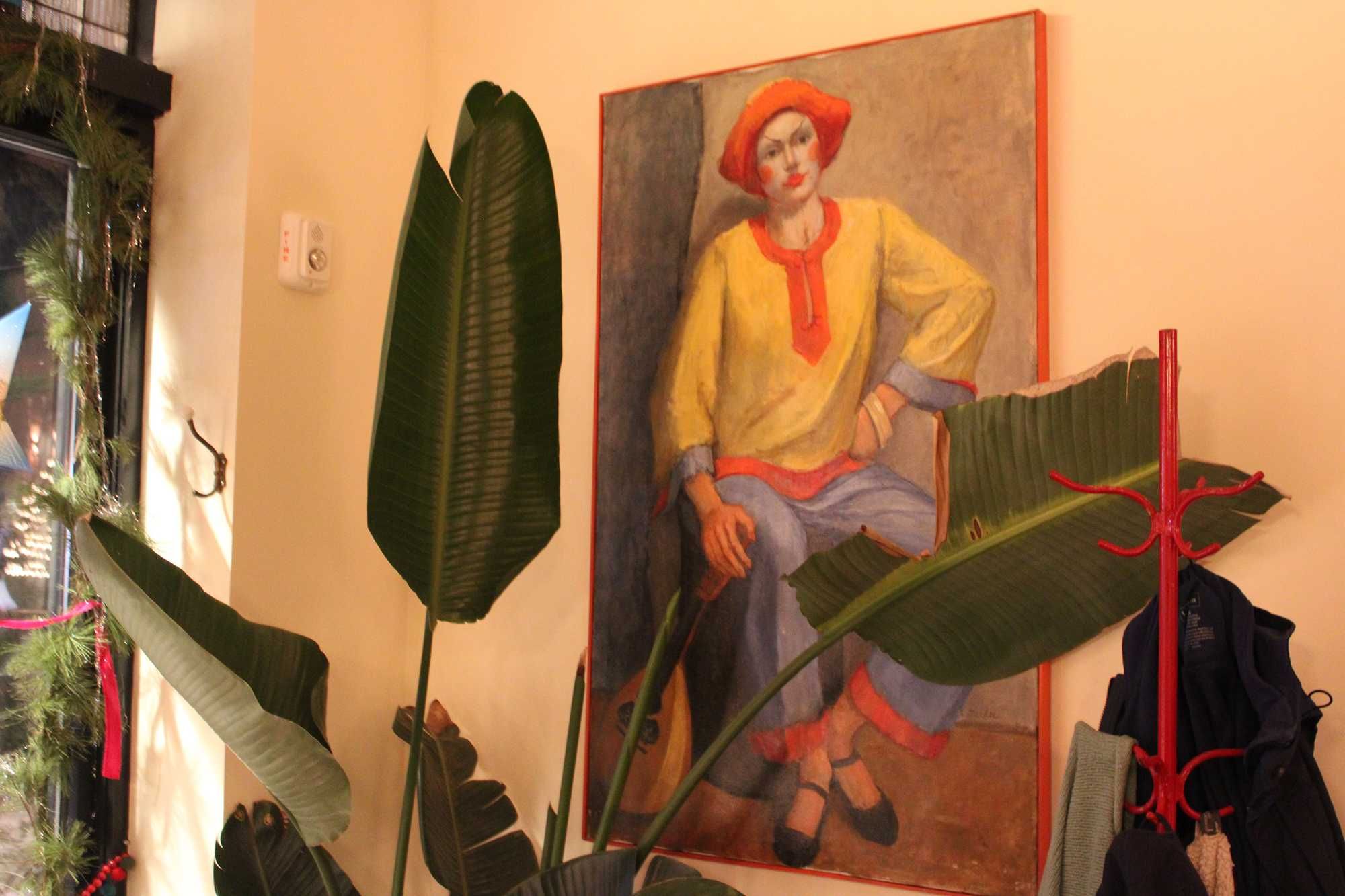 The space, designed and decorated by Pendergist with help from her boyfriend, Nick Speidel, indicates a well-practiced eye is behind the madness. Located within the tall brick walls of the 1924 Whalen & Kastner Garage, Pendergist has tastefully decked out the room with quirky paintings, a hemlock sapling adorned with string lights, rat-themed T-shirts and the taxidermized head of an antelope wearing an evergreen garland as a necklace. Memorabilia is all around – Pendergist has a background in selling antique clothes, including at a former brick and mortar on Railroad Street.