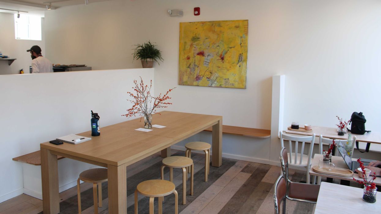 Situated in the airy space formerly occupied by Marjoram + Roux, the new coffeehouse builds on the concept inaugurated by ilse’s first public location in a converted auto body shop in North Canaan. Rebecca Grossman, who co-founded and co-owns the business with her fiancée, Lucas Smith, is local to the area, leading the couple to move roasting operations north from Stamford when they decided to expand from the wholesale production they had focused on the previous four years.