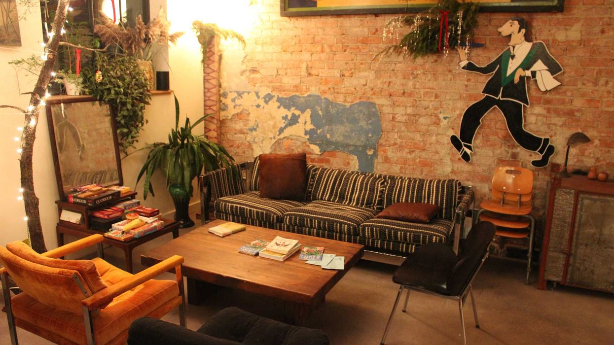 Amid the mayhem, there is a carefully-wrought logic to the space. Guests freely move from seats at the pounded steel bar to a comfortable lounge, where games and wine literature await, or simply peruse the walls as one might in a gallery. A massive communal table dominating the center of the room is highly modular in its function, hosting large parties of wine drinkers or pumpkin carving contests alike. Several window tables and high-tops offer couples seeking a quieter drink the opportunity to do so with some privacy.