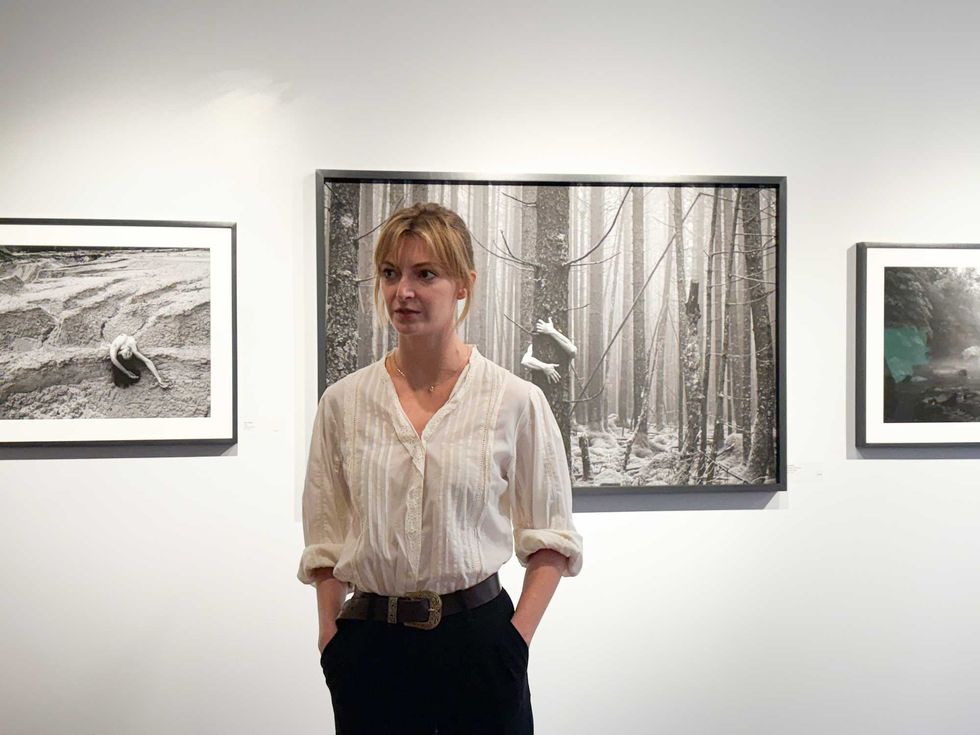 The tour began with Ava Pellor, whose large black-and-white portraits of bodies in nature rely on trust. She explained that she photographs with a tripod or a Rolleiflex so she “never breaks the connection with the subject.” The goal isn’t voyeurism, she said, but agency.