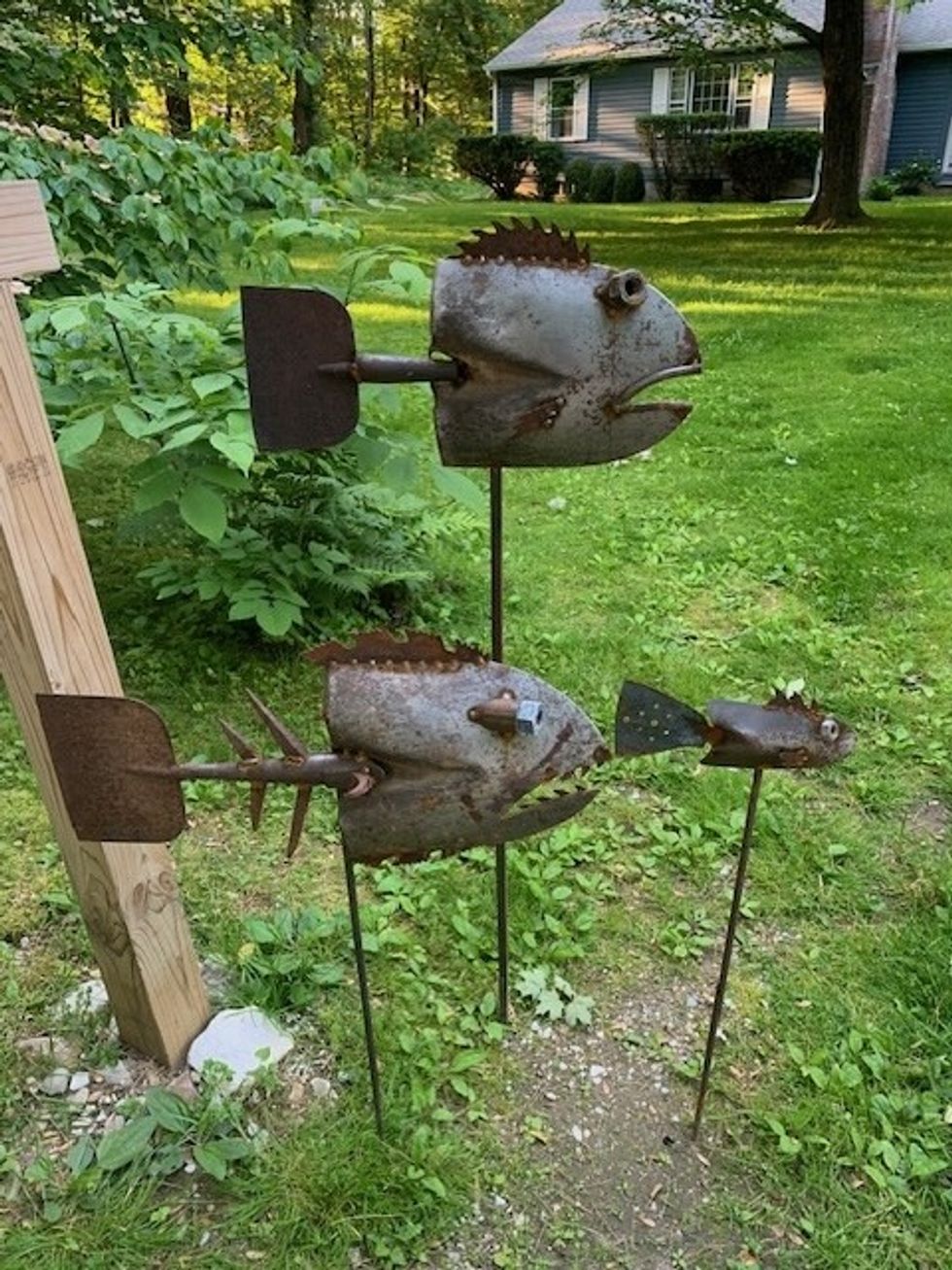 A giant fish that sold at Trade Secrets, the high-end home and garden show held at Lime Rock Park, is just one of the creatures that Matt Wabrek of Birch Lane Rustics in North Canaan, creates by welding old tools and pieces of metal together.