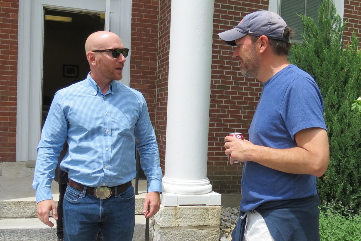 In Kent, he made a stop at Motoriot, where owner Jason Doornick explained he refurbishes vintage 4 x 4s. Murphy was impressed with what he saw. He also visited Kent Wine & Spirits and the Mobil station and convenience store where customer Tom Connors approached him and asked, “When did bravery go out of fashion?”