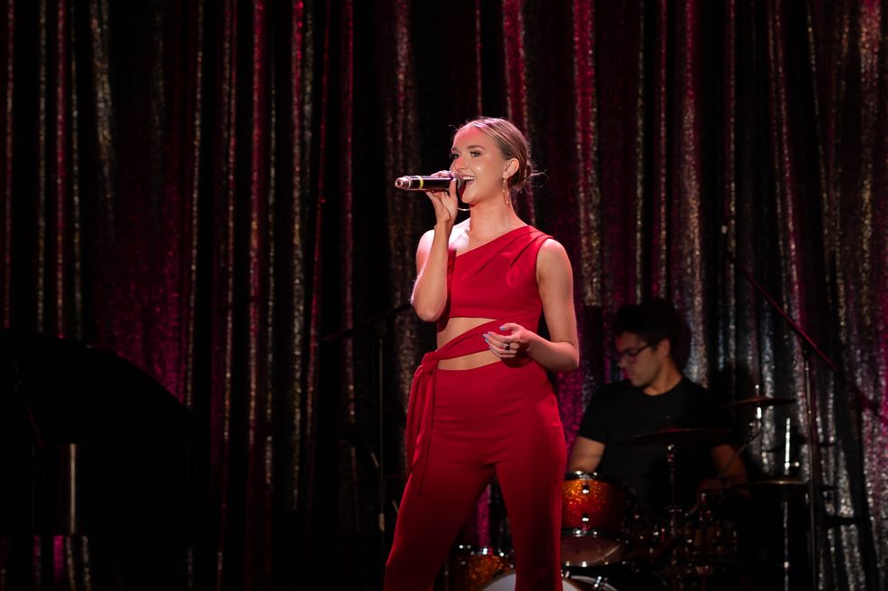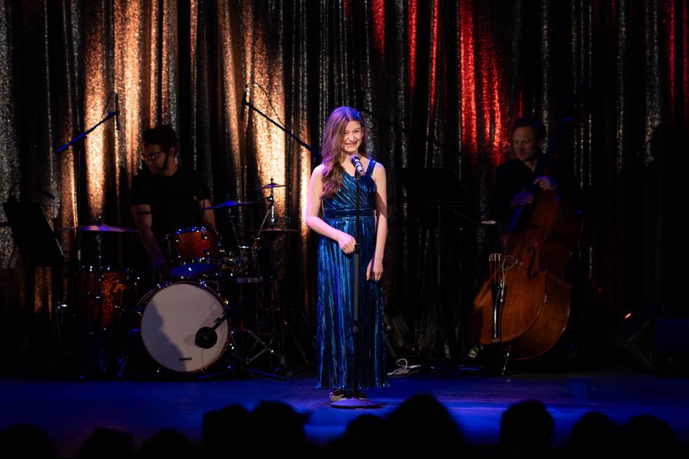 A company of 15 local youth and teens joined the Spotlight Gala at the Sharon Playhouse for ensemble numbers to honor Emily Soell, Board President. Right, Landry Champlin returned to the Sharon Playhouse to perform at the Spotlight Gala.