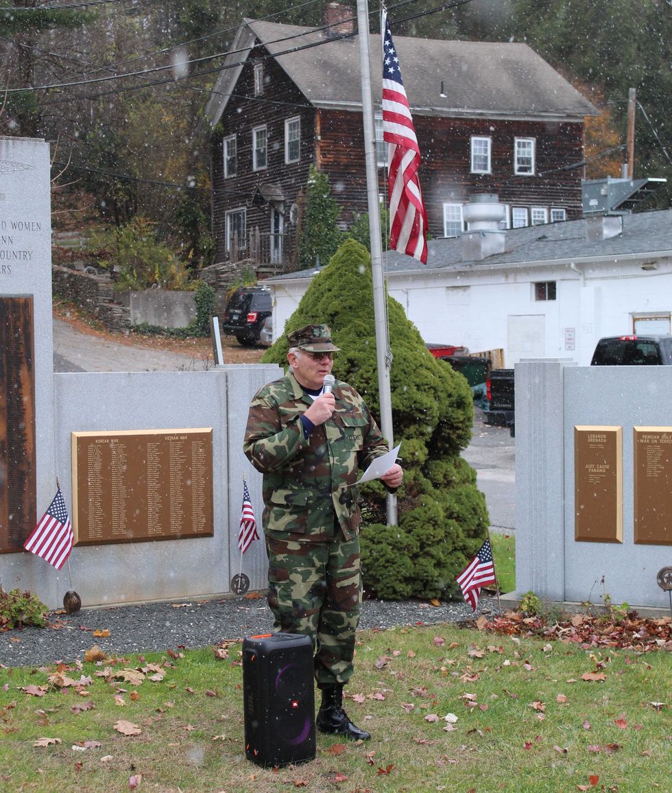 SALISBURY — About 30 people turned out for the traditional Veterans Day ceremony at Salisbury Town Hall on a cold and snowy Tuesday morning, Nov. 11.