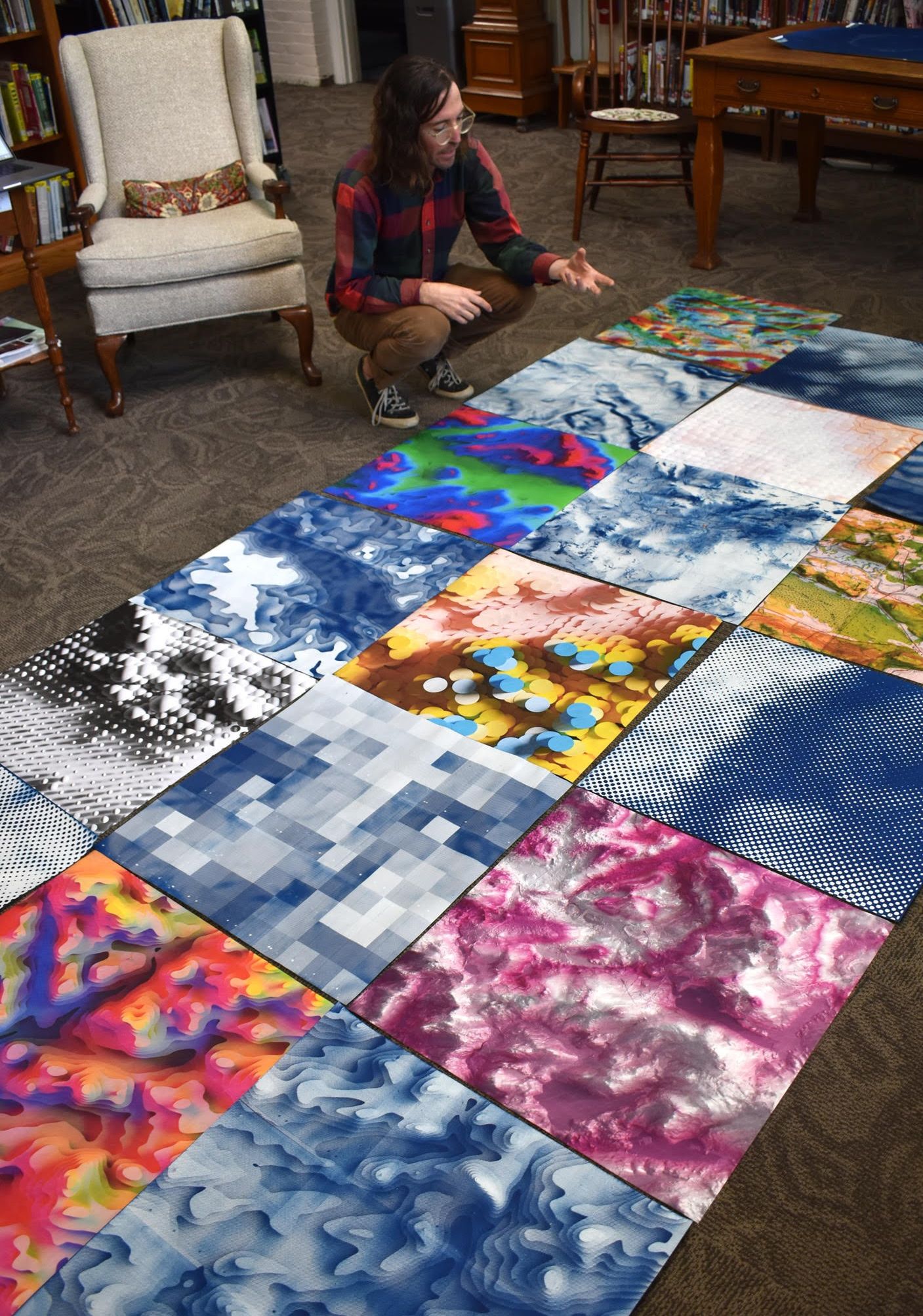 Scott Reinhard’s 16-foot-wide piece of the Northwest Corner is laid out on the floor prior to being hung for the show. L. Tomaino