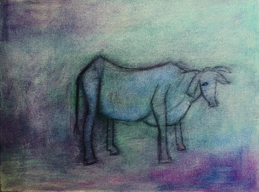The Cornwall Library unveiled its latest art exhibition, “Live It Up!,” showcasing the work of the late West Cornwall resident Joelle Sander on Saturday, April 13. The twenty works on canvas on display were curated in partnership with the library with the help of her son, Jason Sander, from the collection of paintings she left behind to him. Clearly enamored with nature in all its seasons, Sander, who split time between her home in New York City and her country house in Litchfield County, took inspiration from the distinctive white bark trunks of the area’s many birch trees, the swirling snow of Connecticut’s wintery woods, and even the scenic view of the Audubon in Sharon. The sole painting to depict fauna is a melancholy near-abstract outline of a cow, rootless in a miasma haze of plum and Persian blue paint. Her most prominently displayed painting, “Flowers,” effectively builds up layers of paint so that her flurry of petals takes on a three-dimensional texture in their rough application, reminiscent of another Cornwall artist, Don Bracken.